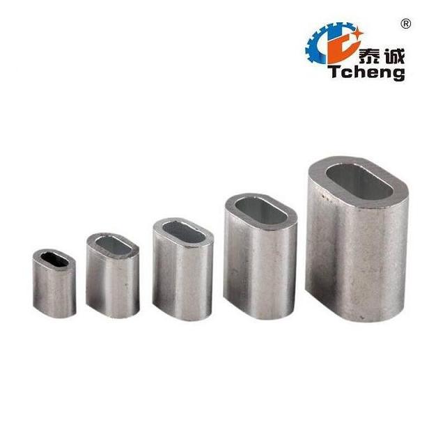 鋼絲繩鋁套—鋁套是鋁材質的,較輕,用來固定鋼絲繩兩端的頭的,鋼絲繩根據(jù)需要的掛圈大小,插入鋁套,然后放入壓套機模具內(nèi),(根據(jù)鋁套型號對應壓套機模具,模具型號跟鋁套型號都是標準尺寸),壓制完,把兩邊擠壓出來的鋁廢料清理掉,一根鋼絲繩完成!